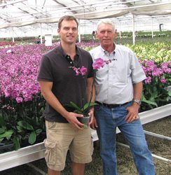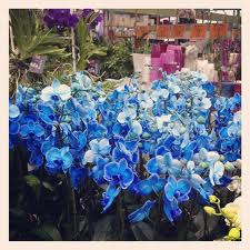 You might have noticed a few new colors on the market. Especially if you shop at Trader Joes. Their is a new product line for phalaneopsis orchids that have been injected with dye. The plant blooms in rich, intense color for the first blooming cycle, then turns back to its native white over the next cycles. Originally introduced only in electric blue, the orchids now come in blue, lilac and Green. I asked Mr. Overgaag what makes these not so naturally induced colors desirable. He said, “The blue orchids introduce a ‘cool factor and open the market to new customers.” The green orchids could be huge favorites also.” It’s part of the Gemstone Collection which stems from a patented technology that belongs to a firm in the Netherlands, which Westerlay Orchids represented in Western states.