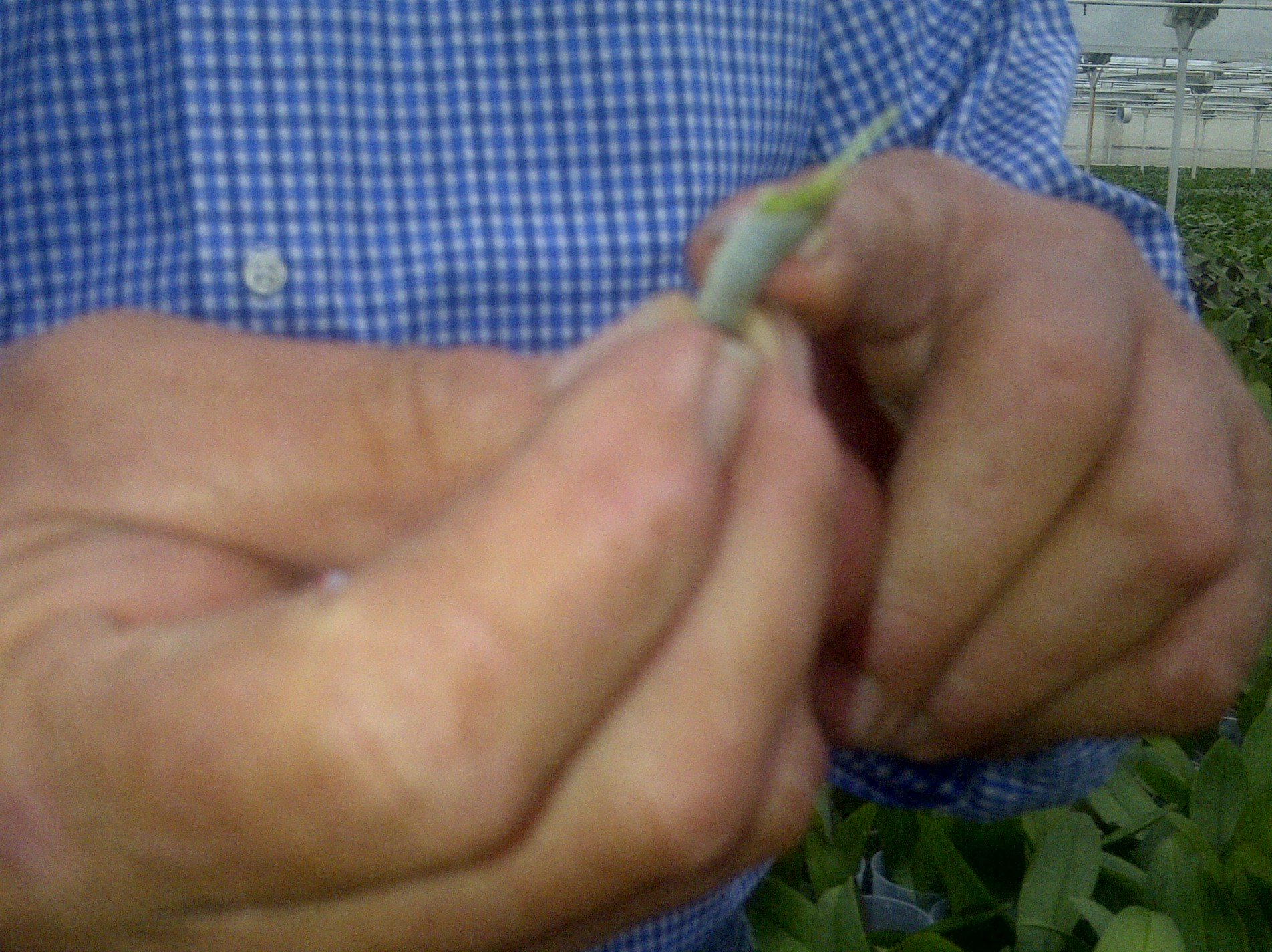 It all starts from seed and is cultivated in a small container in the greenhouse on a conveyor system that automatically rotates the plants to the proper light and irrigation to maximize its growth and full potential.